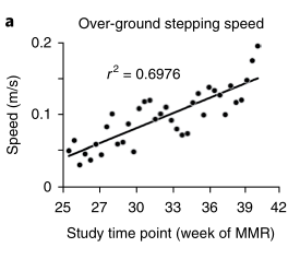 在治療16周后,患者需要助行架以及訓(xùn)練員協(xié)助其膝蓋和臀部發(fā)力進(jìn)行下地行走。到了43周,該患者僅需要訓(xùn)練員給予輔助減重支持就能使用助行架行走。