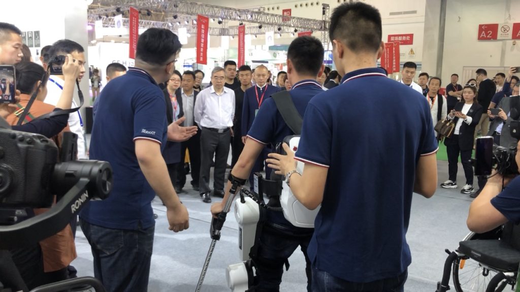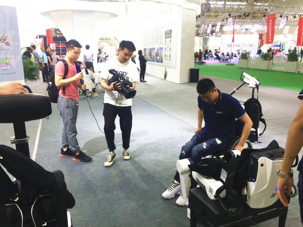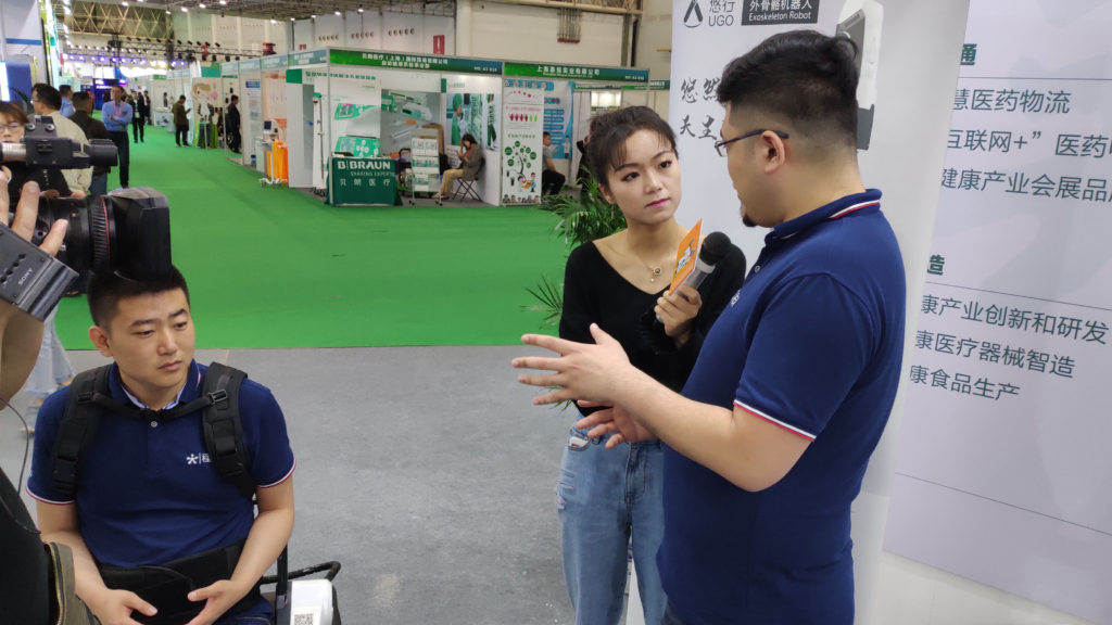 此次博覽會程天科技為大家帶去了自主研發的悠行下肢外骨骼機器人以及悠扶機器人,兩款產品主要針對下肢失能、弱能人群。悠扶機器人可以幫助用戶進行站立,解決日常生活中的位置轉移,幫助其恢復生活自理。展會上吸引眾多參展游客體驗。
