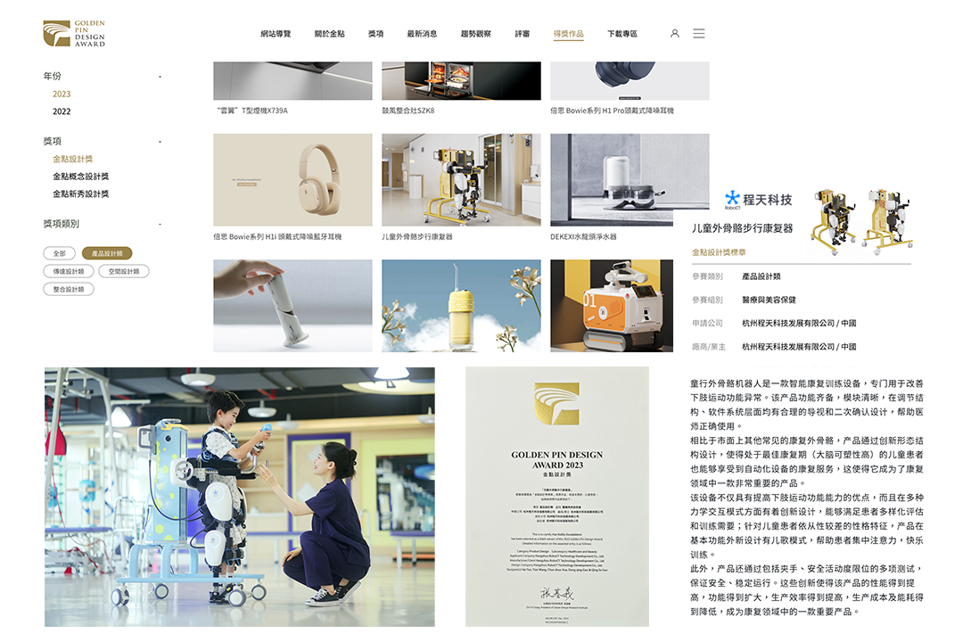 每一個孩子都是家庭的希望,每一個康復過程都承載著家庭的期待。因此,程天科技團隊對兒童外骨骼產品的每一個細節都精心打造,從材料選擇到結構設計,從功能實現到外觀呈現。獲得金點設計獎對于程天科技來說,既是一種肯定,也是一種激勵。未來,程天科技還將繼續探索和研發更多具有創新性和實用性的兒童康復產品,讓科技更好地服務于人,讓孩子們健康快樂地成長。