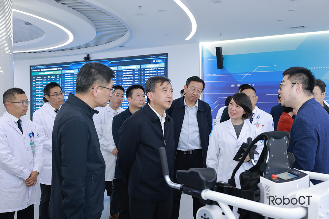 出征儀式前夕,浙江省科技廳廳長高鷹忠率領考察組一行蒞臨阿克蘇地區第一人民醫院調研浙江科技醫療援疆成果,慰問了解浙江省第十一批第一期協作項目實施情況。事實上,程天科技悠行外骨骼機器人設備作為第一批科技援疆設備,于21年9月交付阿克蘇地區第一人民醫院使用,兩年間,以其獨特的優勢,得到了醫護人員和患者們眾多積極正向的反饋。