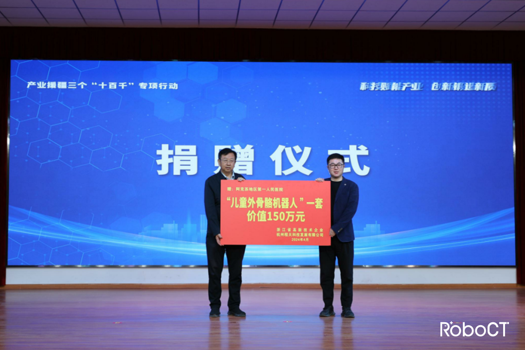 近日,為深入實施產業援疆三個“十百千”專項行動,“浙阿工業科技創新中心”揭牌暨浙江第二批援疆科技特派團出征儀式在阿克蘇阿拉爾國家高新技術產業開發區舉行。阿克蘇地委書記,一師阿拉爾市黨委第一書記、第一政委吳紅展出席活動并講話,阿克蘇地委副書記,浙江省援疆指揮部黨委書記、指揮長駱梅英,浙江省科技廳廳長高鷹忠,新疆維吾爾自治區科技廳黨組成員、副廳長趙為分別致辭。程天科技,作為浙江省高新技術企業代表參加活動,并向阿克蘇地區第一人民醫院捐贈了一套兒童外骨骼機器人。