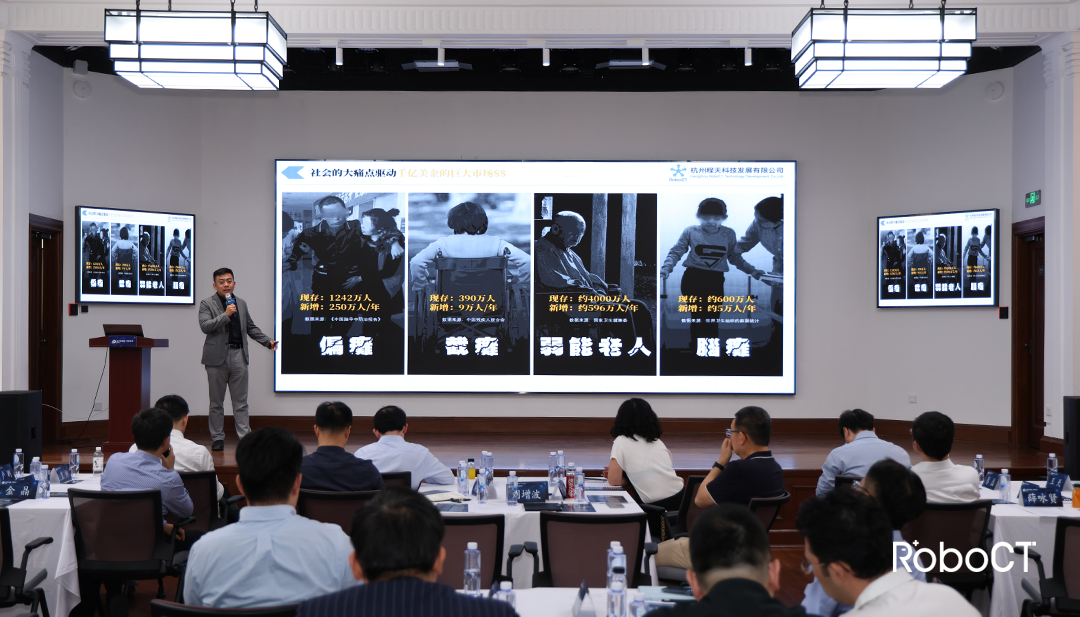 王天博士詳細介紹了程天科技在健康養老領域的創新實踐和成功案例,強調了科技在提升老年人生活質量方面的巨大潛力,并展示了企業研發的下肢康復外骨骼設備和健康管理平臺。討論環節中,與會嘉賓圍繞“如何通過科技創新和資本賦能共創健康養老新生態”這一議題展開了深入交流。