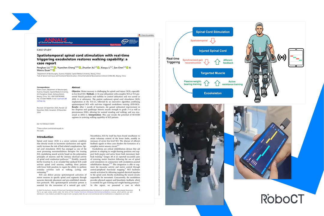 近日,由首都醫科大學宣武醫院神經外科段婉茹團隊完成的「時空序列脊髓電刺激結合實時觸發的外骨骼訓練以恢復行走能力的病例報告(Spatiotemporal spinal cord stimulation with real‐time triggering exoskeleton restores walking capability: a case report)」在《臨床和轉化神經病學年鑒(Annals of Clinical and Translational Neurology)》期刊發表,揭示了脊髓電刺激時空序列與外骨骼機器人(EXS-SCS)相結合的創新算法在恢復脊髓損傷(SCI)患者行走能力方面的潛力。