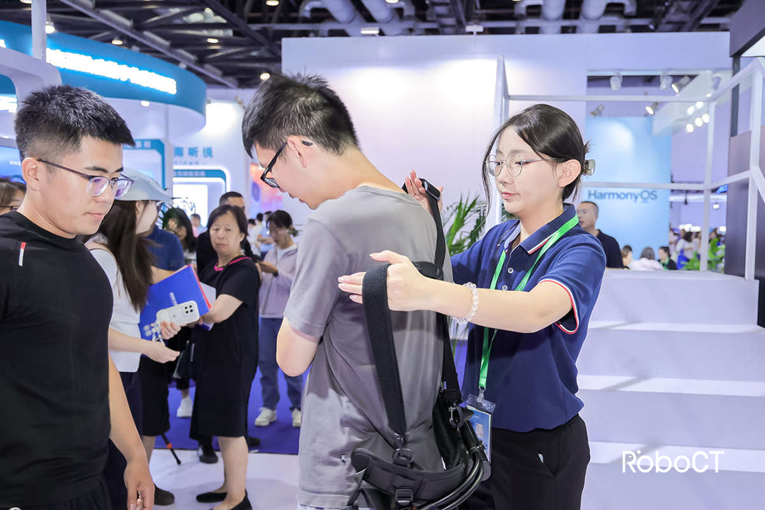 展會期間,專業觀眾和訪客也在企業展位親身體驗這些創新產品,與企業團隊面對面交流。程天科技此次展出的產品各具特色,涵蓋了從行動助力到神經康復的全方位解決方案。速行髖、膝關節助力外骨骼專為日常步行場景設計,融合AI智能算法與高精度傳感技術,可實時識別用戶的步頻與發力習慣。