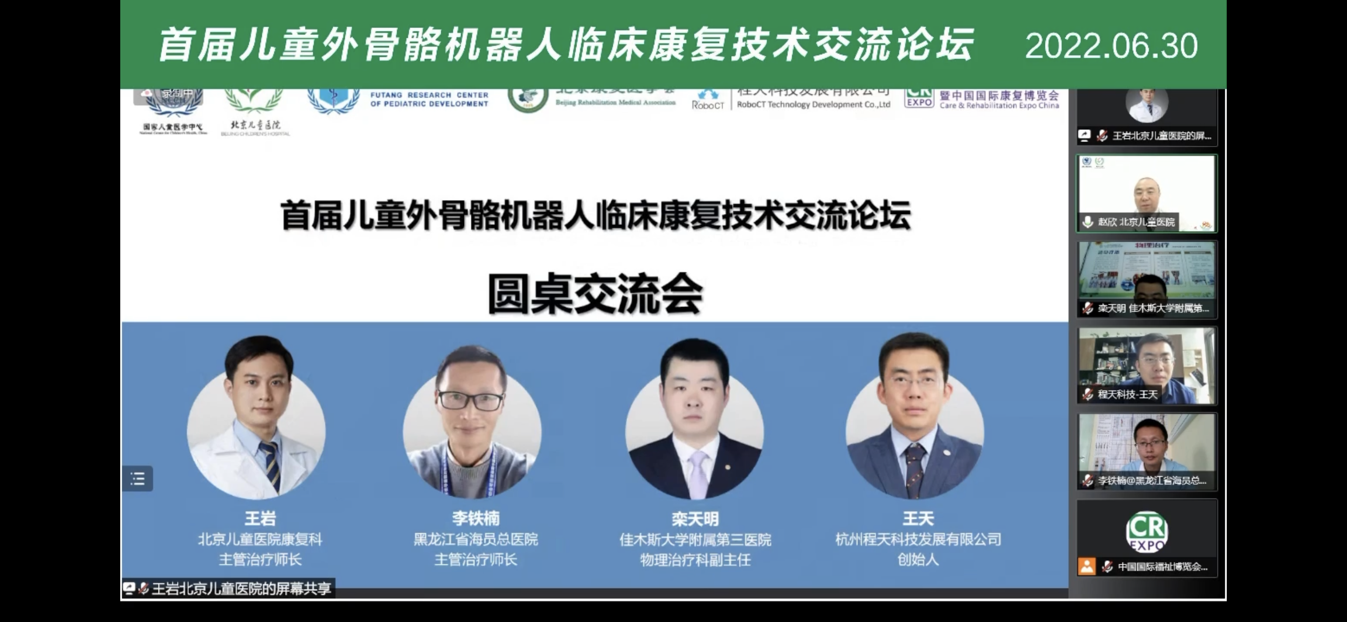 首都醫(yī)科大學(xué)附屬北京兒童醫(yī)院院長倪鑫院長、北京康復(fù)醫(yī)學(xué)會(huì)秘書長李廣慶秘書長為論壇致辭。來自北京大學(xué)第一醫(yī)院、佳木斯大學(xué)附屬第三醫(yī)院、河南省兒童醫(yī)院、湖南省兒童醫(yī)院、北京博愛醫(yī)院以及黑龍江省海員總醫(yī)院等多家醫(yī)院的業(yè)內(nèi)專家參與交流。程天科技創(chuàng)始人兼CEO王天博士作為企業(yè)代表,各方就兒童外骨骼的臨床康復(fù)技術(shù)展開討論。