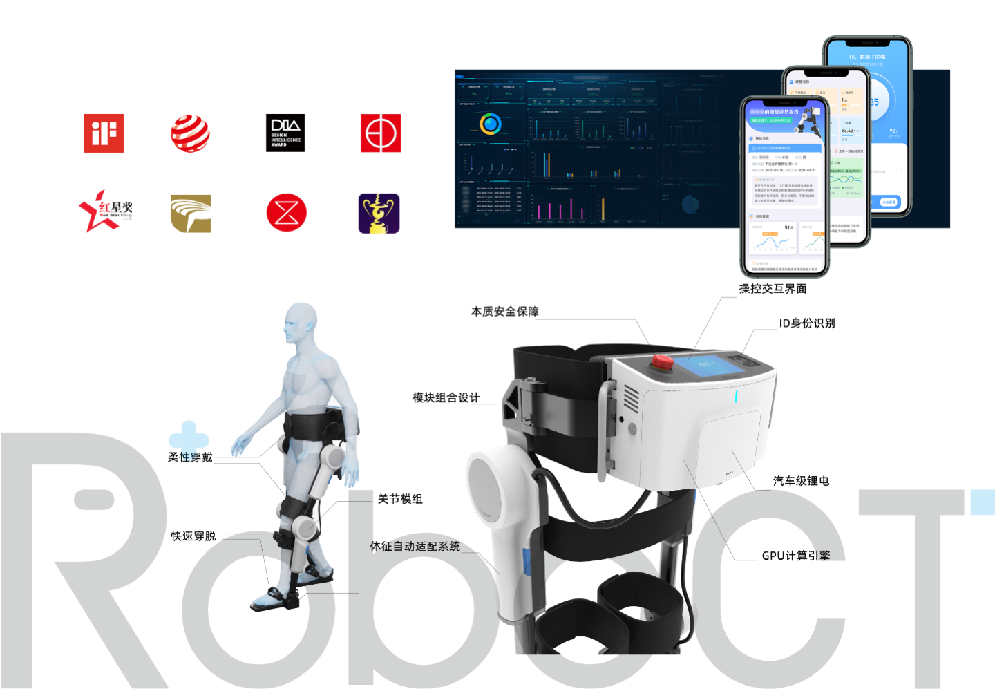 此前,程天科技是業內首個獲批適用范圍為中樞神經病變(涵蓋截癱、偏癱、腦癱等患者)的下肢外骨骼機器人NMPA注冊證的創新醫療機器人公司。2021年相繼獲得該領域的3個類別8款型號的新產品上市許可。同年還入選畢馬威《中國社會辦康復醫療50企業報告》,獲“領先康復科技企業獎”。程天科技在2021年度獲得醫療康復領域獎項10余項,包含紅點獎、IF設計獎、金點獎等在內的國際設計獎項5項,擁有自主知識產權300余項。