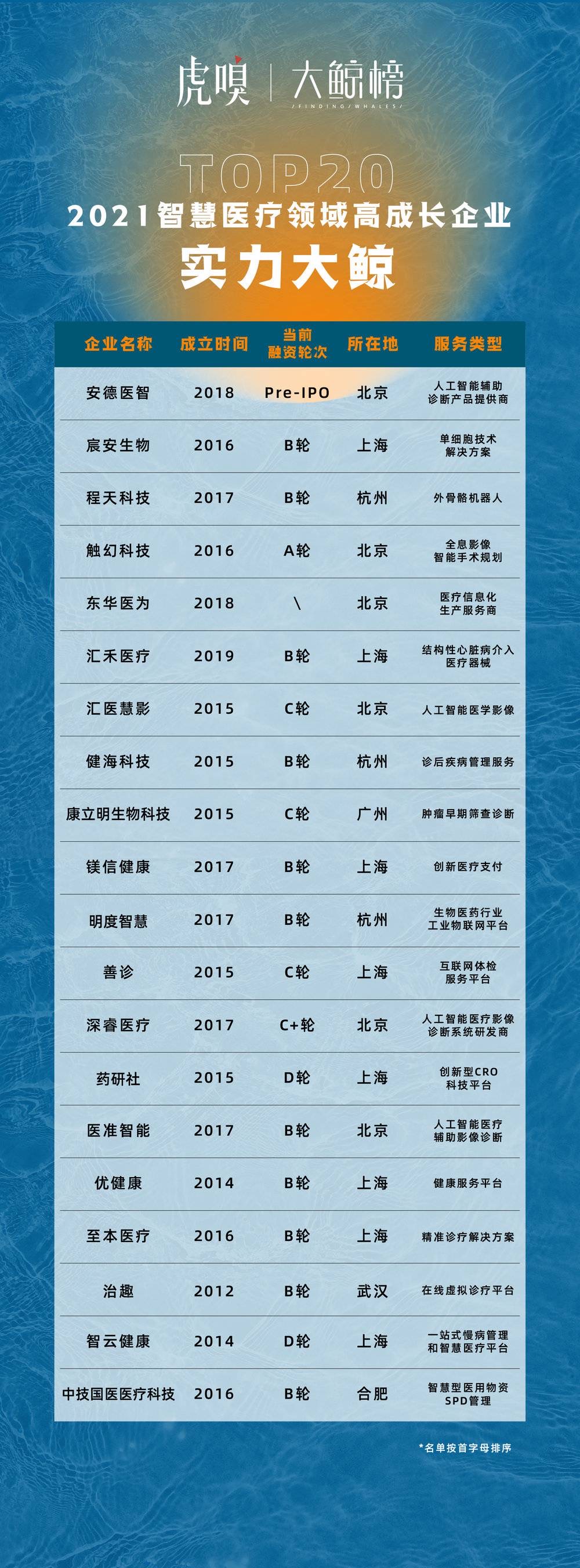 *虎嗅大鯨榜2021智慧醫(yī)療領(lǐng)域高成長企業(yè)實力大鯨榜單