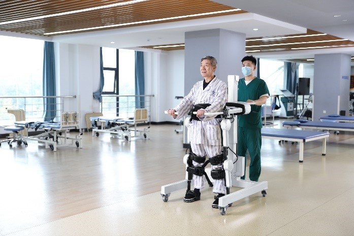 西醫康復通常是輔助肢體功能障礙的患者進行坐位、站立、行走、平衡等功能鍛練,嚴重者配備矯形器、輪椅等,通過強化訓練或外在輔具獲得功能。程天科技悠行外骨骼機器人作為一款神經領域的高端康復智能設備,基于神經可塑性理論,為下肢功能障礙的患者在早期建立生理步態模式進行走訓練,同時預防和糾正異常步態模式,綜合提高患者的下肢運動能力。